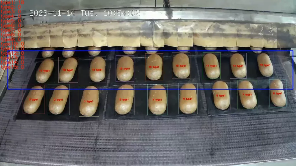 It is possible not only to count bread using a regular CCTV camera, but also to recognize what type of bread is currently moving on the conveyor belt. You can count both at the entrance to the oven and at the exit from the oven. You can count dough, bread without packaging and in packaging.